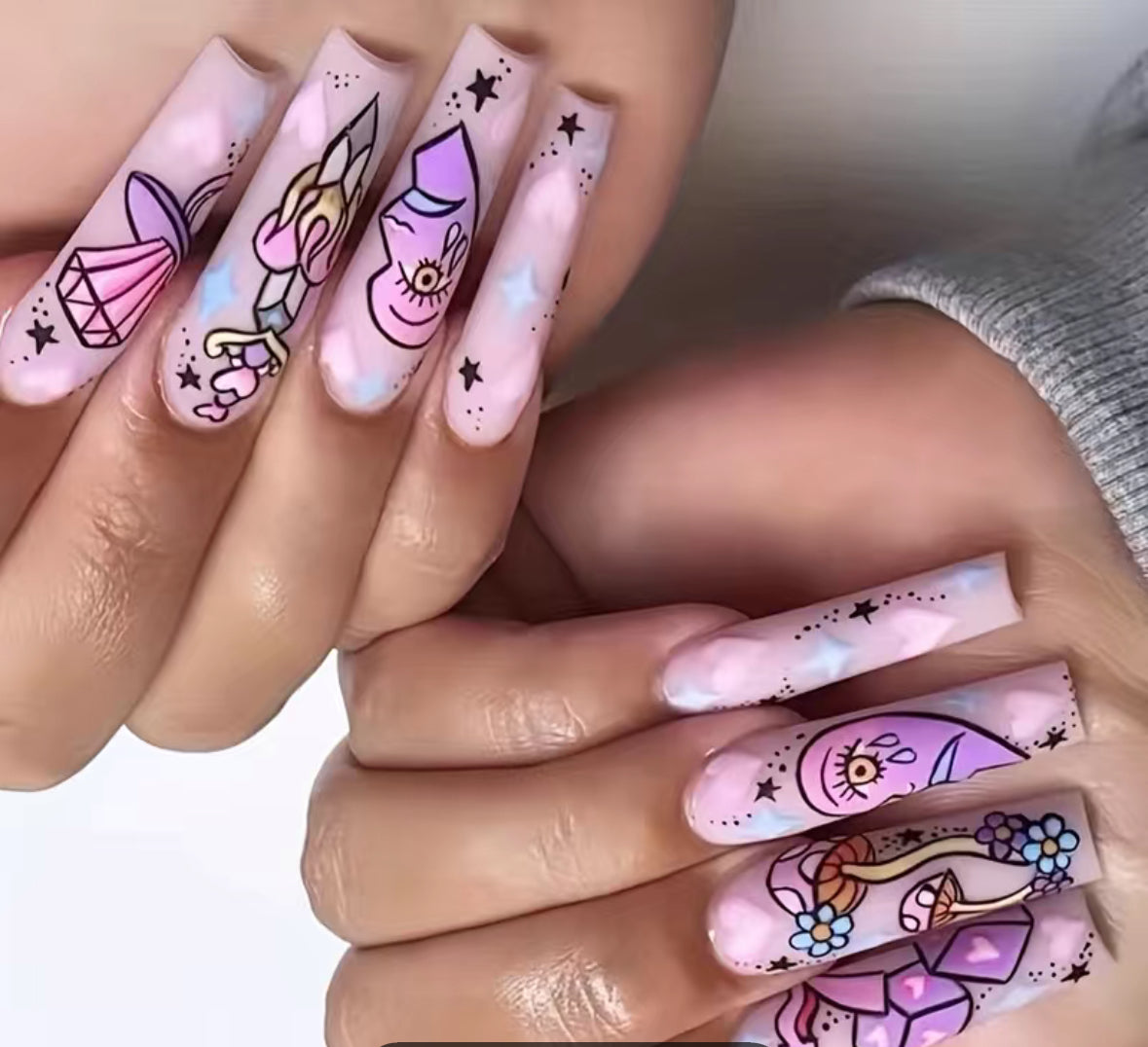 My baby cousin Cierra inspired pink Sticky Finger Press on Nails comes with glue and stickers for your preference. Also included is a nail file for the perfect fit. Nails can be worn 3-5 times with proper care.