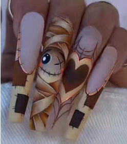 Tiasia from Big Break Magazine Nude and Brown patchwork inspired press on nails