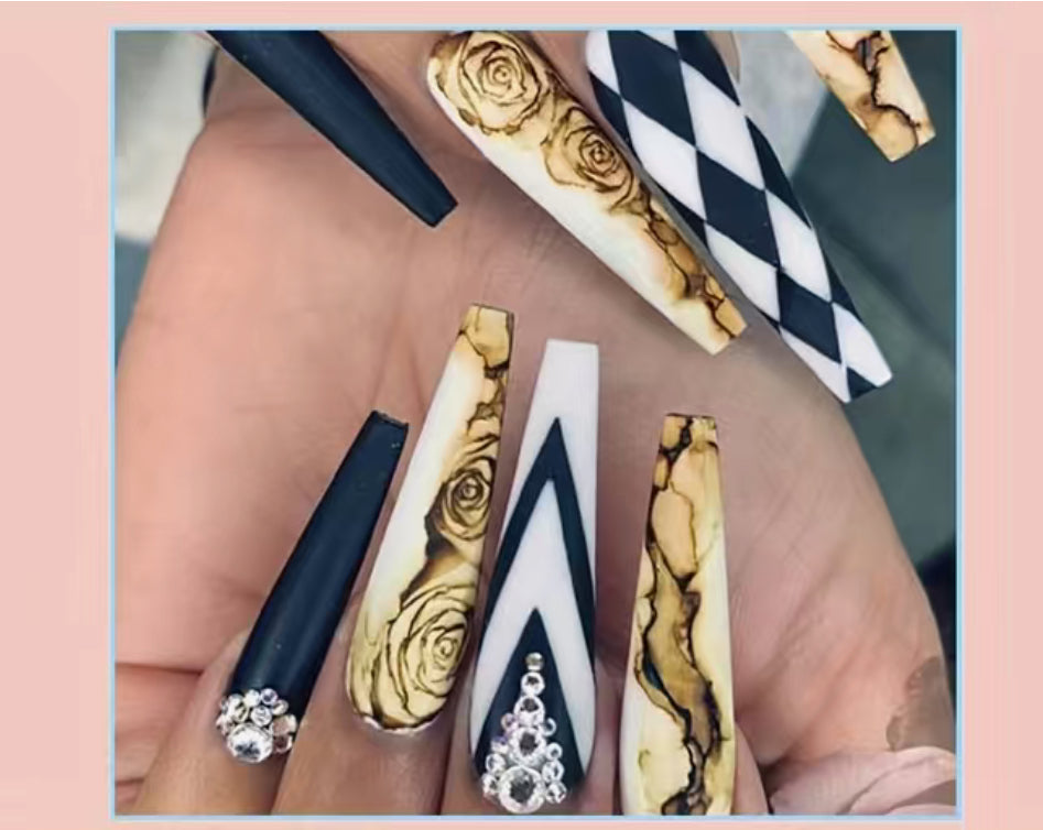 Sunni inspired multi colored print Sticky Finger Press on Nails comes with glue and stickers for your preference. Also included is a nail file for the perfect fit. Nails can be worn 3-5 times with proper care.